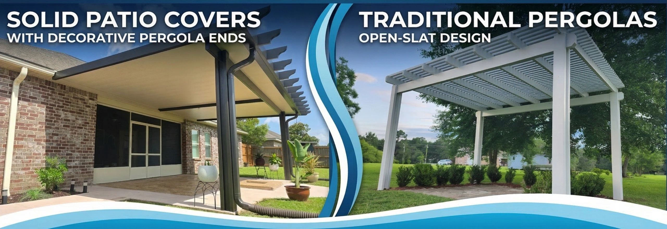 Let our expert pergola builders design the perfect aluminum pergola for your outdoor living space. We'll work with you to create a one-of-a-kind pergola that fits your style and budget. Our all aluminum construction reduces maintenance and extends the life of your beautiful pergola structure. Aluminum is the longest lasting material to choose for your pergola installation in New Orleans or Biloxi area. We serve All of South Louisiana and Southern Mississippi.